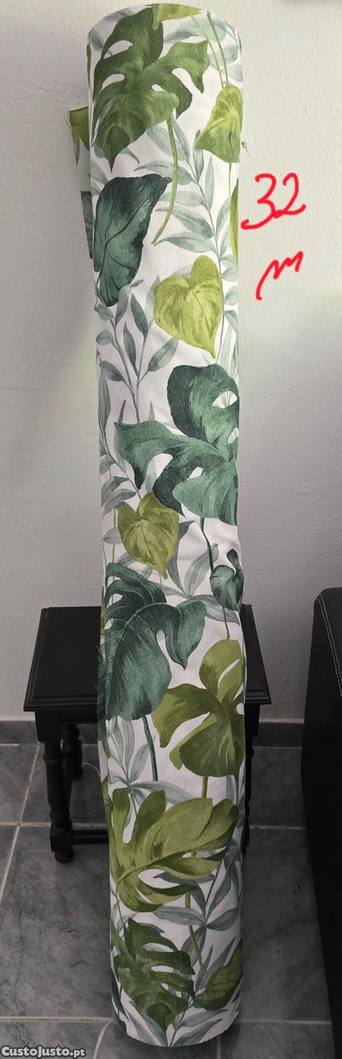 Vendo rolo de tecido Loneta Estampada c/ Folhas com 32 metros