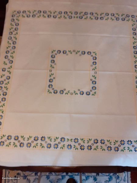 Toalha de mesa, bordada em ponto de cruz a estrear.