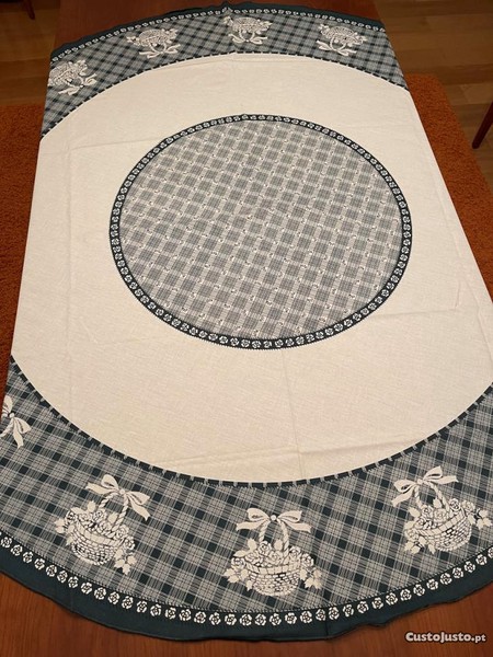 Preço: 20 €Toalha de mesa redonda verde e creme com cestos