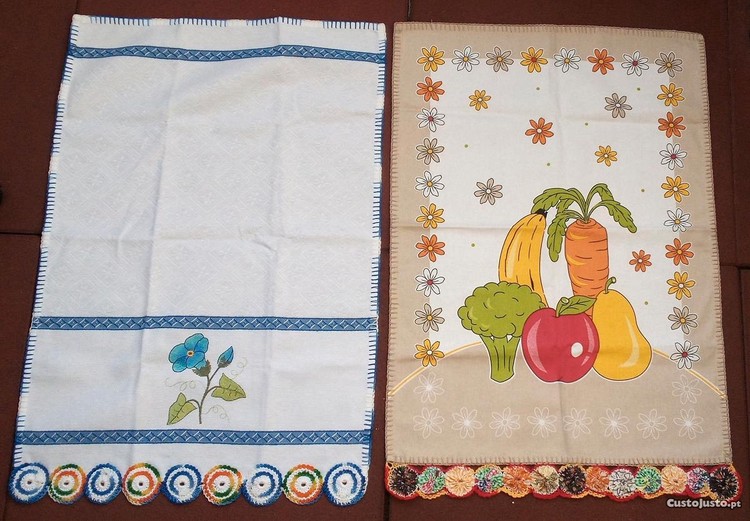 Preço: 10 €Toalhas de cozinha com renda bordada à mão