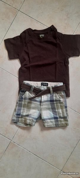 calções com cinto (zara) com t-shirts castanha (zippy)