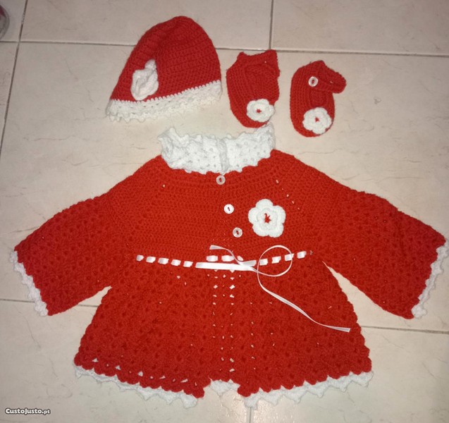 Conjunto casaco + sapatos + gorro "nova e embalada", feitos à mão