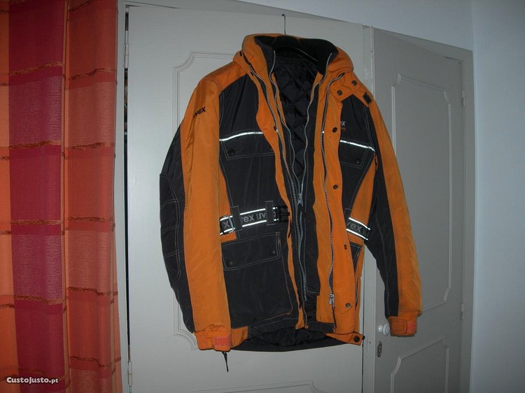 Blusão tipo casaco com proteções nos cotovelos, ombros e costas com forro de retirar para o verão, fechos em condições e muito bonito. O único senão é o punho do lado direto que está sujo. É um M de tamanho que com forro colocado veste a um homem de 1.75 de altura e 80kg de peso.Uvex Racing. Original