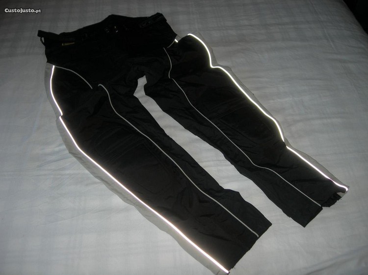Calça Polo Drive unissexo veste (40) (M) forradas interiormente, proteções de joelho, fechos em condições, bom estado, faixas refletoras dá para suspensórios.