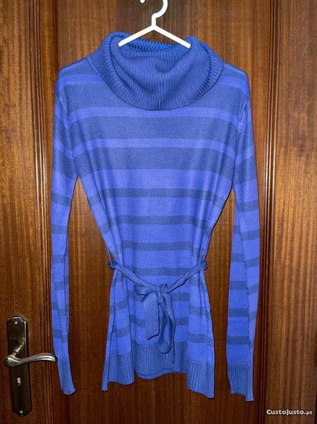 Camisola de malha às riscas lilás/roxo, em ótimo estado.