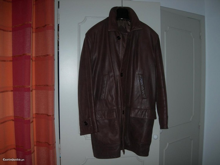 Casaco castanho clássico de pele verdadeira muito macia da Casa das Peles foi muito pouco utilizado como se pode ver na foto 7 da proteção do pescoço na gola. Tamanho 52, Intemporal. Muito bem conservado.