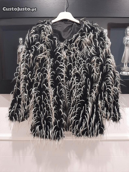 Vendo casaco de pelo mesclado preto e branco, da marca Julie. Veste 38-40. Novo