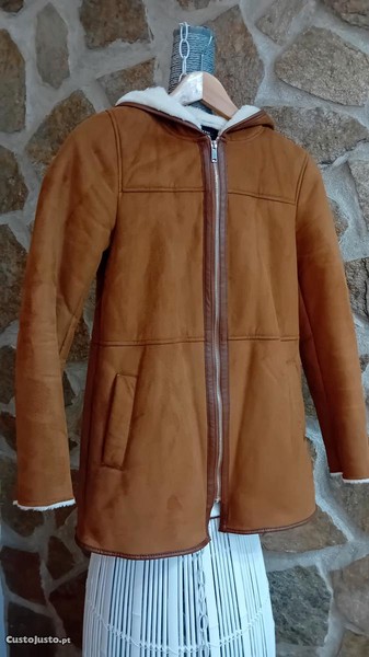 Vendo um casaco em cor camel, com capucho e interior em pêlo tamanho XS comprado na Tiffosi
