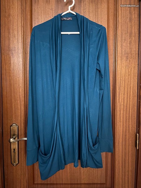 Casaco estilo quimono fininho azul, com bolsos, em ótimo estado.