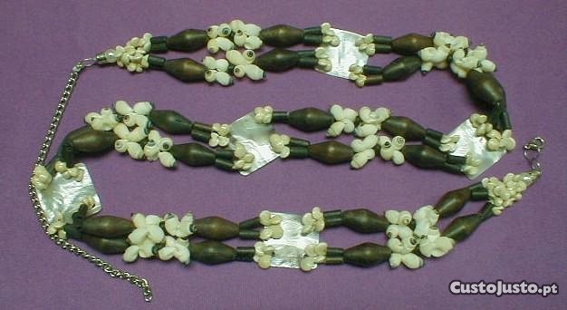 Cinto de concha, madeira e madrepérola 78cm