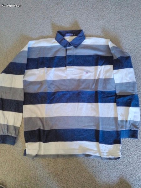 vendo polo marca GANT original NOVO tamanho M de riscas creme,cinza,azul,a gola em sarja azul