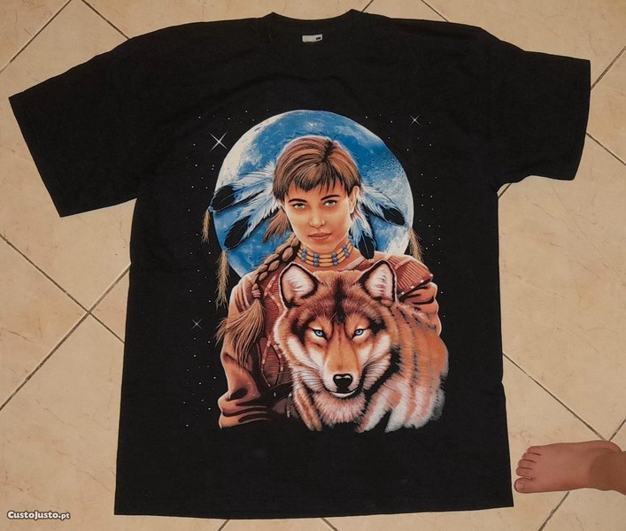 T-shirt L, preta, estampada com um tigre e nas costas com um espanta espíritos "como nova"