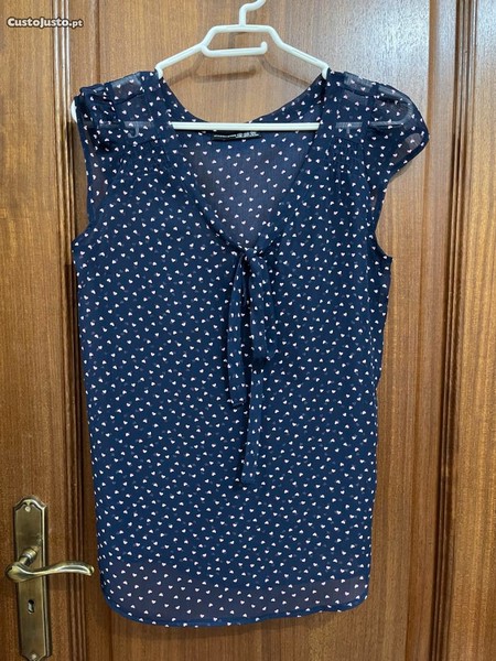 Top azul escuro com transparência com padrão de corações, da Primark, em ótimo estado.