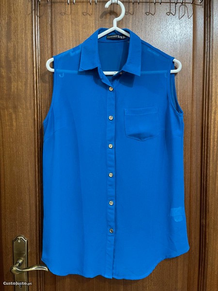 Top azulão com transparência com botões dourados, da Primark, em ótimo estado.