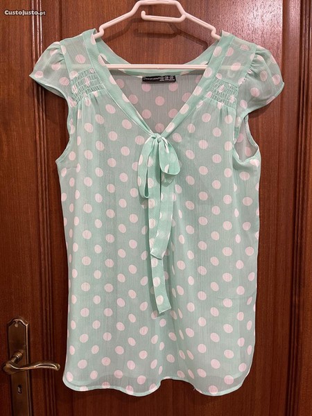 Top verde água com bolinhas brancas com transparência, da Primark, em ótimo estado.