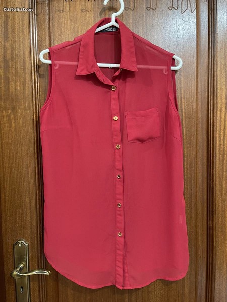 Top vermelho com transparência com botões dourados, da Primark, em ótimo estado.