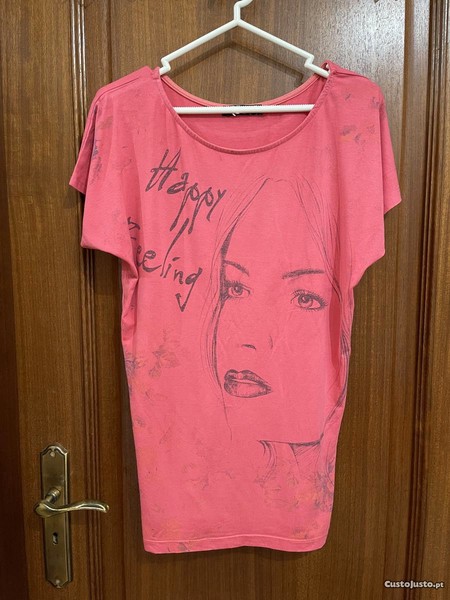 Preço: 5 €Tshirt cor salmão com cara feminina