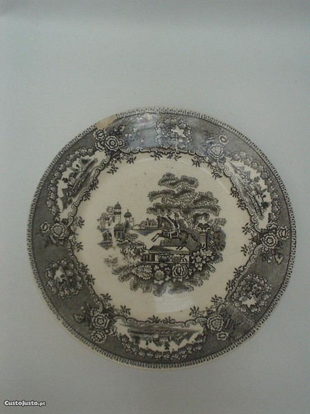 2 Pratos Sacavém Estátua , preto , fundo , 24 cm