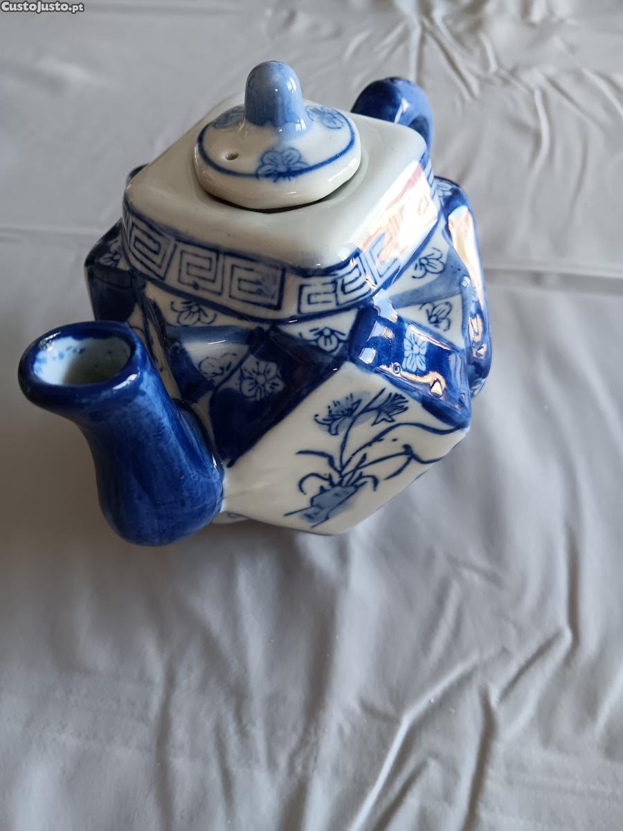 Bule de chá em porcelana chinesa dos anos 60. Feito à mão, em óptimas condições, como saído da loja.