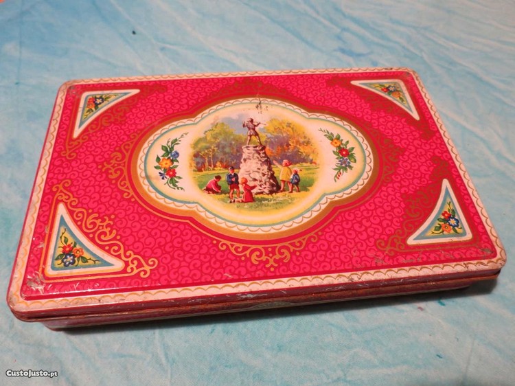 Preço: 15 €Caixa antiga de chocolates / bombons em metal com impressão a cores