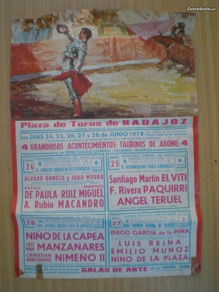 Cartaz grande e antigo de 1978 tourada / touros / corrida de toiros em Badajoz para quem gosta de tauromaquia / toiros.