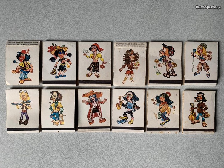 Preço: 6 €Conjunto de 12 Carteiras de Fósforos Antigas - Hippies