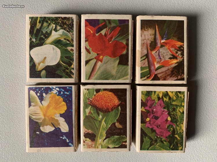 Conjunto de 6 Caixas de Fósforos Antigas - Flores
