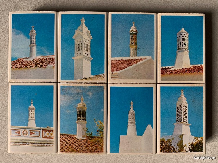 Preço: 4 €Conjunto de 8 Caixas de Fósforos Antigas - Chaminés Típicas