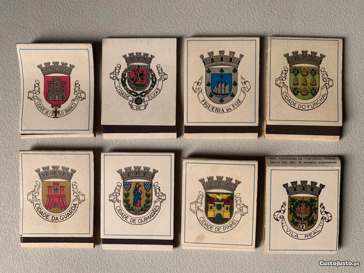 Conjunto de 8 Carteiras de Fósforos Antigas - Colecção Brasões