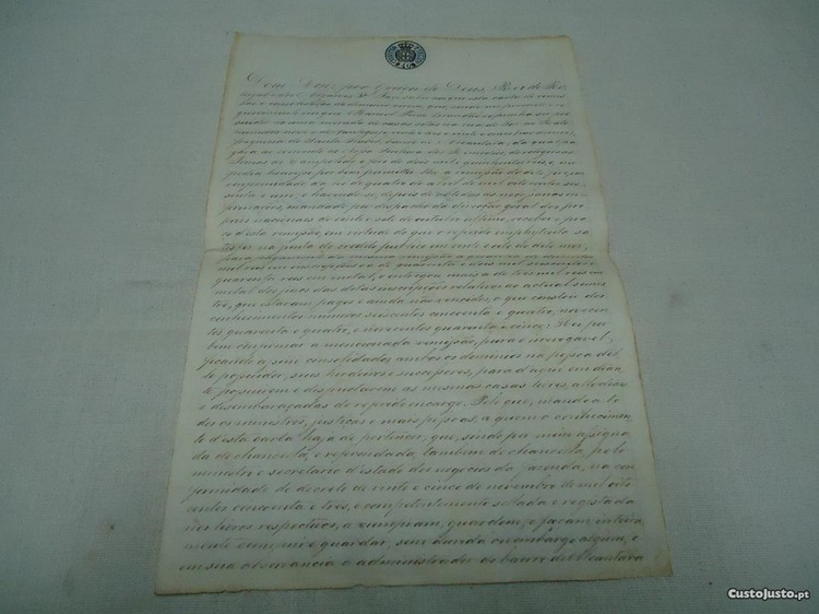 Documento Manuscrito de 1861 assinado pelo Rei D. Luís com o selo Real com as armas Portuguesas