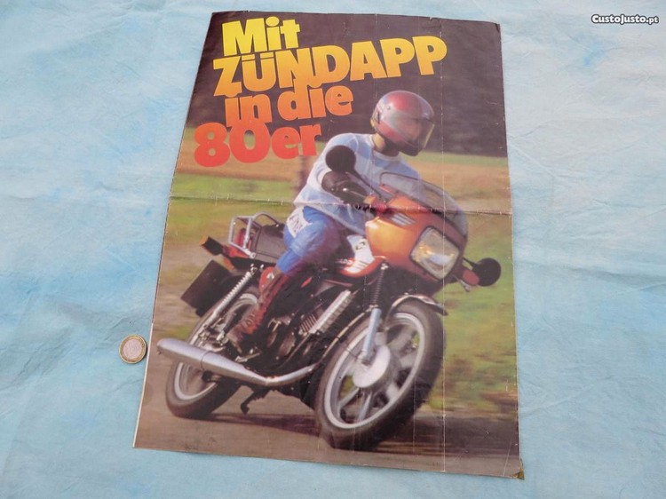 Raro folheto antigo Zundapp com motorizadas e motos dos anos 80, com fotos a cores e pormenores de cada modelo, em alemão.