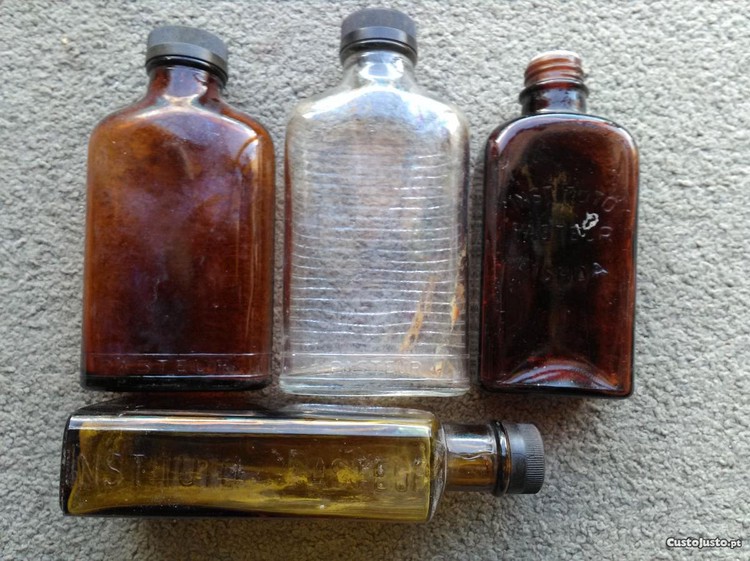 vendo frascos dos Laboratórios PASTEUR em vidro castanho,branco,e verde, todos tem em alto relevo a dizer Laboratórios Pasteur Lisboa e com tampa original,cada 5EUR, todos impecáveis