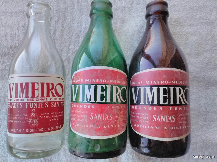 vendo garrafas antigas de água VIMEIRO em vidro verde,castanho,ou transparente 5EUR cada uma, todas impecáveis