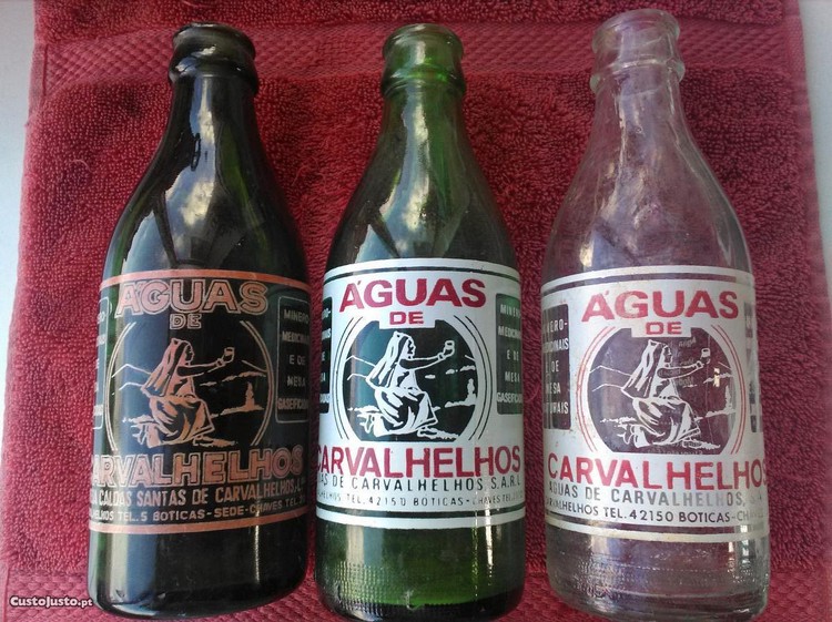 vendo garrafas muito antigas de água de CARVALHELHOS três pequenas e uma de litro, a primeira pequena tem telefone n 5 cada 5EUR, todas impecáveis