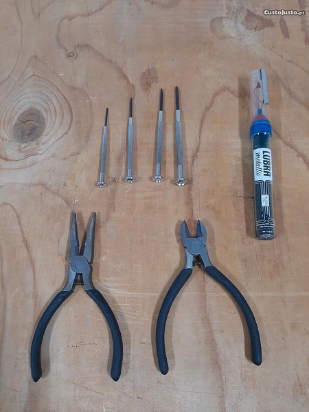 Composto por chaves, alicate de corte, alicate de corte e óleo de lubrificação.
