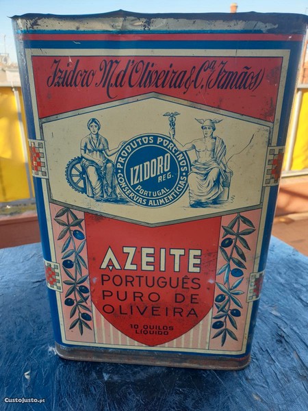 Vendo lata muita antiga de azeite Izidoro de 10L penso que seja dos 40 a 50 impecável para os anos que tem