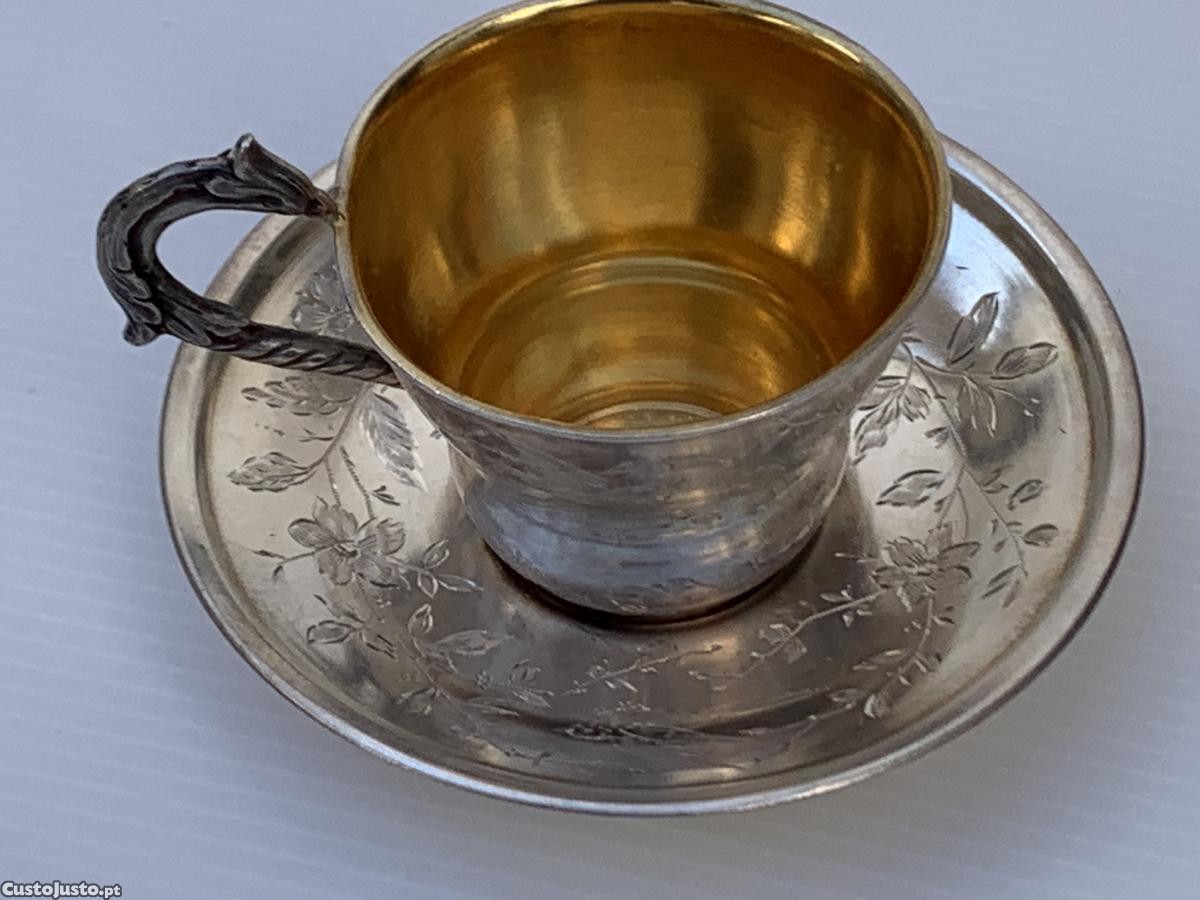 Preço: 140 €Linda chávena de café e pires em prata cinzelada , Javali II título