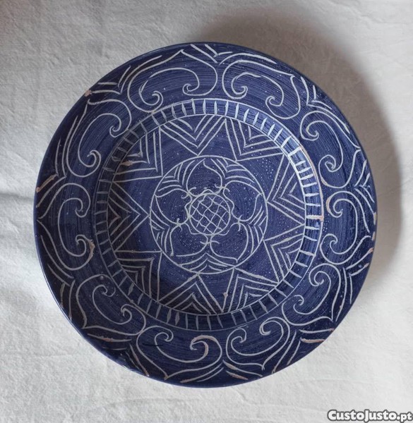 Lindíssimo Prato da Cerâmica Leite dos Açores, ano de 1980. Decoração geométrica,