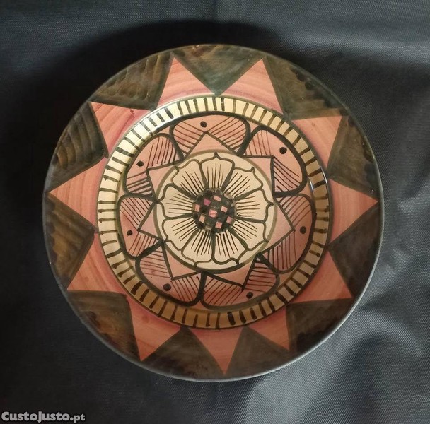 Lindíssimo prato da Cerâmica Leite dos Açores, ano de 1980. Decoração geométrica em tons Terra. Muito bom estado. 26,5 cm diâmetro, 5 cm altura.