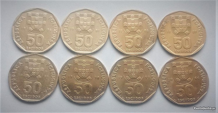 Lote de 8 moedas de 50$00 escudos . Excelente preço.