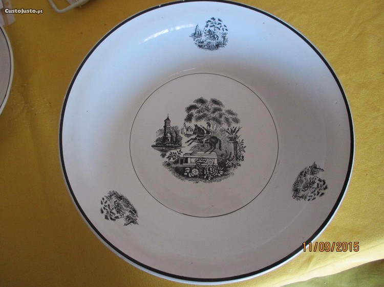 Louça antiga - 2 pratos e uma saladeira - estátua cavalinho