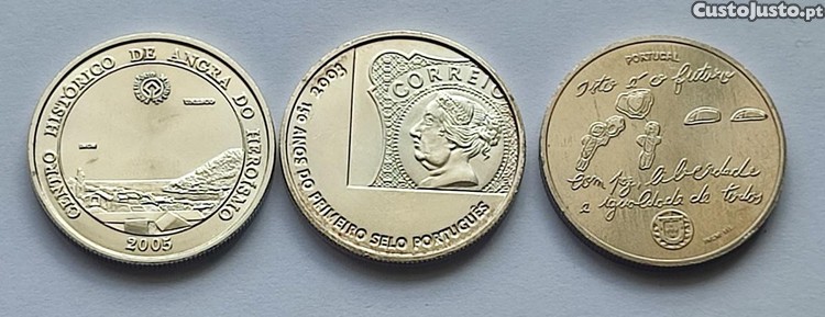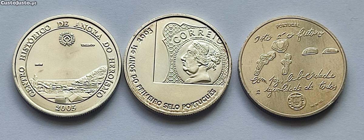 Moedas Centro Histórico Angra Heroísmo,150 Anos Primeiro Selo Português e A Juventude e o Futuro