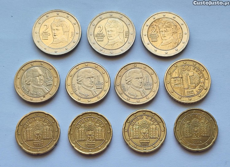Moedas da Áustria EUROS 2002,2004, 2005,2006,2007,2008,2009,2010, 2011 e 2014