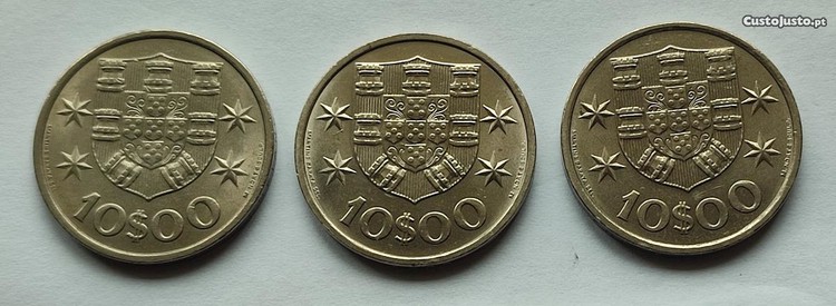 Preço: 1 €Moedas de 10$00 Escudos 1971, 1972 e 1973