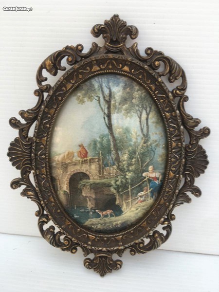 Preço: 25 €Moldura em bronze com desenho sobre seda