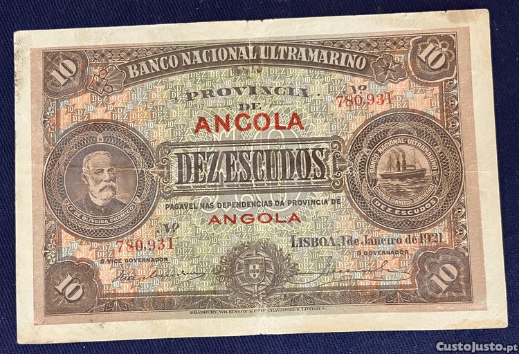 Preço: 150 €Nota de Angola 10 escudos de 1921