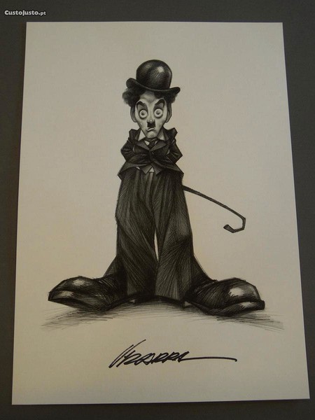 Caricatura de Charles Chaplin, icónico ator no papel de Charlot.