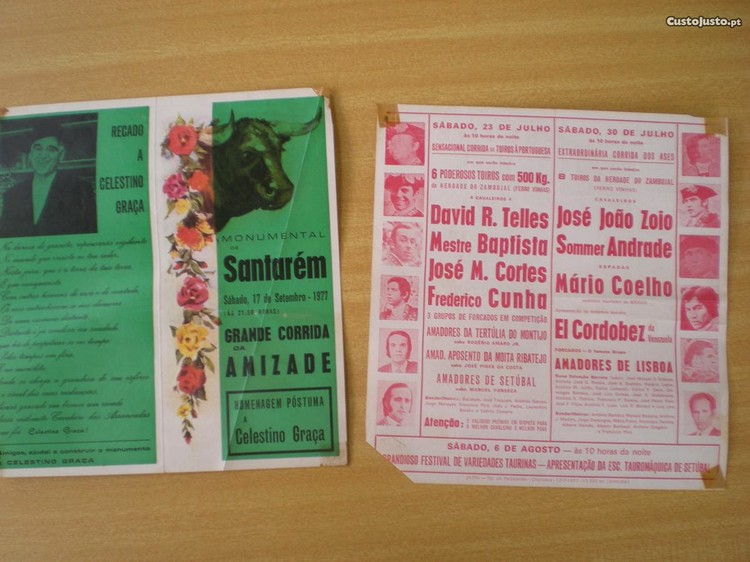 Programas publicidade antiga de 1977 tourada / touros / garraiada / corrida de toiros em Setúbal e Santarém para quem gosta de tauromaquia.
