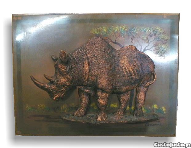 Quadro de cobre com rinoceronte 37x49x7cm