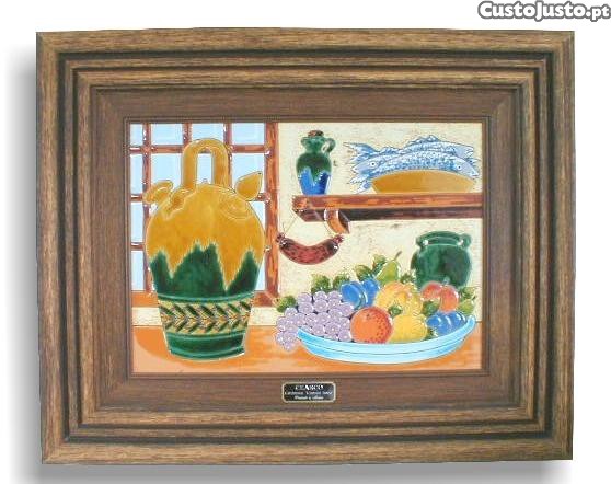 Preço: 180 €Quadro de madeira e cerâmica 50x62x3cm
